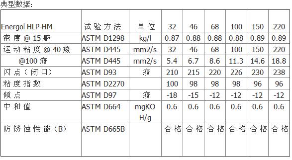 Energol HLP-HM达到或超过了下列性能要求:DIN51524第二部分液压油HM类;Hagglunds-DenisonHF-0、HF-2、HF-1;DenisonT6C,VickersI-286-S,VickersM-2950-S;CincinnatiMilacronP68-69-70;USSteel136规格和AFNORFilteribilityNFE48-690(干)和NFE48-691(湿)试验。
