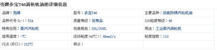 壳牌多宝T46涡轮机油 透平油/Shell Turbo T46