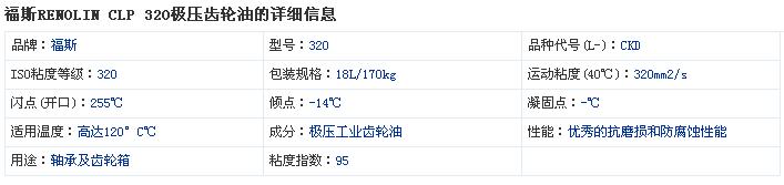 福斯RENOLIN CLP 320极压工业齿轮油,具有极强的极压抗磨和防腐蚀性能。符合美钢USS224、美国齿轮制造商协会AGMA250.04及德国DN51517-3的规格。特别适用于负荷处于波动的情况和齿面磨合期.并取得FLENDER认可。建议用于承受高压和工作温度波动大的轴承及齿轮箱润滑系统。