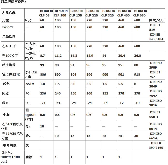 RENOLIN CLP润滑油推荐用于工业试用短枝,螺旋和斜面齿轮封闭循环或飞溅式润滑,油经营TEMperatures至100℃及以上的高峰(*多 120°C)。