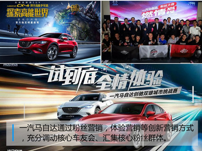2016年11月,一汽马自达重新调整产品策略,停产4款车型,仅保留阿特兹和CX-4这2款产品,同时引入了MX-5 RF,使旗下产品涵盖各大细分市场,品牌形象也再次得到提升。2018款CX-4于2017年8月升级上市,12月份销量达6,602辆,全年交出71,807辆的亮眼成绩单,劲涨114.8%。阿特兹作为B级车“运动标杆”全年收获52,285辆的销售成绩,同比增长31.2%。
