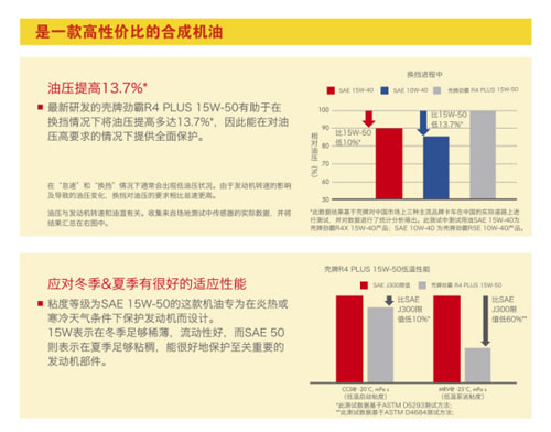 此次新品上市,*吸引人的正是壳牌针对中国市场量身研发的15W-50产品规格。作为壳牌劲霸**款15W-50的合成技术油产品,即使面对炎热或寒冷天气条件,壳牌劲霸R4 Plus增强型依然可为引擎带来稳健保护。独特的粘度设计,可在换挡情况下将油压提升13.7% ①,有效地解决了机动车在“怠速”和起步“换挡”的情况下通常出现低油压状态的问题。突破以往合成产品粘度限制,壳牌劲霸R4 Plus增强版15W-50在夏季依旧可以保持较高的粘度,冬季也可以保持良好的流动性,有效保护至关重要的引擎部件,四季通用。