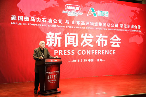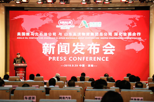 9月29日上午,由美国傲马力石油公司主办、山东高速物资集团总公司承办的深化全面合作新闻发布会在山东高速股份大厦隆重举行。发布会上,双方代表签订了深化全面合作协议。