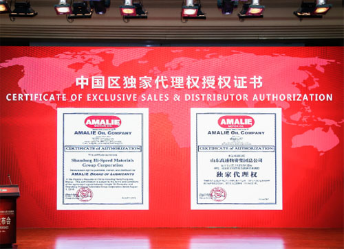 (图四 山东高速物资集团总公司傲马力润滑油中国区**代理权授权证书展示)