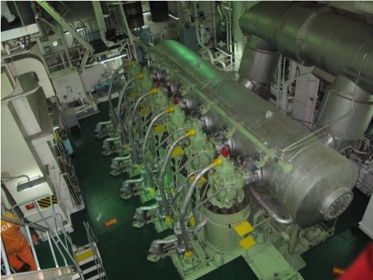 (图:大型船用发动机,其高度接近三层楼,对船用润滑油的技术提出了很高的挑战)