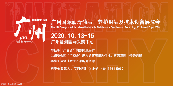 专业面向润滑油行业国际品牌盛会-----2020第14届广州国际润滑油品、养护用品及技术设备展览会一如既往的为你服务,现正招商中。感谢以下媒体对本展会的支持:润滑油商情网、润滑油资讯网、中国润滑油网、润滑油商务网、润滑油168、中国润滑油脂网、中国化工黄页、中国化工商机网、中国节能环保黄页、润滑与密封、中国润滑油代理商网、中国特油网、汽车维修与保养、唐普资讯、中国金属加工网、石油添加剂网、润滑油销售与市场网、易贸资讯、石化英才网等。
