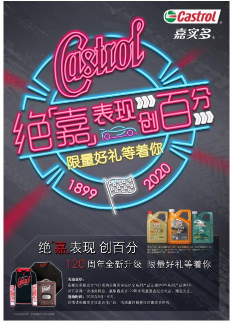 作为润滑专家嘉实多,在2020年推出全新嘉实多极护,不仅包装焕新、防伪升级,更用先锋创新科技不断突破极限,挑战100分高昂性能表现,为亿万车主与其爱车带来更全面的安全保障。值此国庆中秋双节同庆,全新升级的嘉实多极护同步开启假日狂欢,点击下方H5链接即可查询附近门店,了解活动详情,更有机会赢取嘉实多120周年限量复古纪念礼品。心动不如行动,快来参加吧!