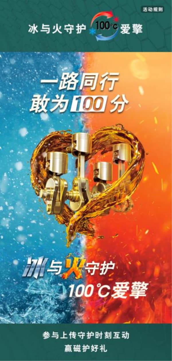 保护你所爱,是嘉实多磁护一直以来默默付出的承诺。为庆贺双节,同时也正值嘉实多120周年,嘉实多在全国范围内发起了“冰与火守护100°C爱擎”活动,与广大消费者共同守护100°C爱擎,更有限量嘉实多磁护守护好礼等着你。关注嘉实多官方微信公众号,上传你的守护时刻照片,查询并体验最近的线下门店保养以及参与嘉实多磁护线上快闪店活动,均有机会赢取惊喜守护福利。快来感受冰与火的全温差守护,一起保护爱车引擎吧!