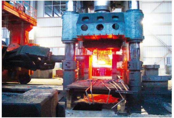 唐山某科技有限公司隶属于北京某重工集团,主要生产轧辊钢、轴承钢、模具钢,其中锻压新材料项目是河北省十二五规划的重点项目,核心设备是1台捷克一家公司设计生产的5000吨双柱下拉式快速锻造液压机,型号ERCH-57HW,液压系统工作压力32MPa,伺服系统。锻造液压机于2013年9月正式投产,初装采用长城4637-1合成液压油。