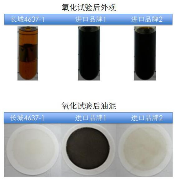 长城液压油4637-1合成液压油采用合成型基础油和无灰型高效添加剂,不仅粘温性能优异,而且氧化安定性极佳。在模拟实际使用工况的氧化实验中,实验后的长城液压油4637-1合成液压油外观清凉透明,没有产生油泥,运动黏度和酸值几乎没有变化,而对比实验的进口品牌液压油不仅产生油泥外观变黑,而且运动黏度和酸值变化率超过5%。
