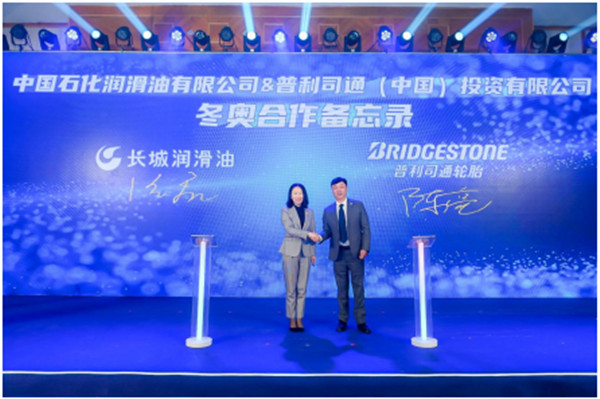 发布会现场,中国石化长城润滑油还与奥运会全球合作伙伴——普利司通,签署了冬奥合作备忘录,并正式揭牌共同打造的汽车养护冬奥形象店。