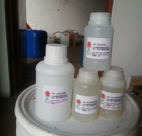 小部分铝材材质发黑问题:如压铸铝,浸泡铝合金除油碱蚀剂、铝合金活化剂时请分开使用;如果浸泡工件时和药水反应大不断冒大气泡时,需兑水1-3倍稀释,浸泡1分钟左右即可,普通铝材小气泡反应不强烈无需兑水正常浸泡2-5分钟,(发黑时尽量别离开人,建议小面积测试成功后再批量发黑)以上反应为正常现象。