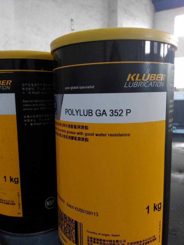 这种特殊的油脂具有良好的密合性以及优异的耐冷热水。它已授权FDA(美国食品和药物管理局)的如USDAH2润滑剂的使用食品加工行业。应用POLYLUBGA352P被用于滚动轴承和滑动的润滑轴承,机架,气缸导向,气缸,负载辊和滑道。POLYLUBGA352P是适合机器和设备的食品加工及相关行业,接触的