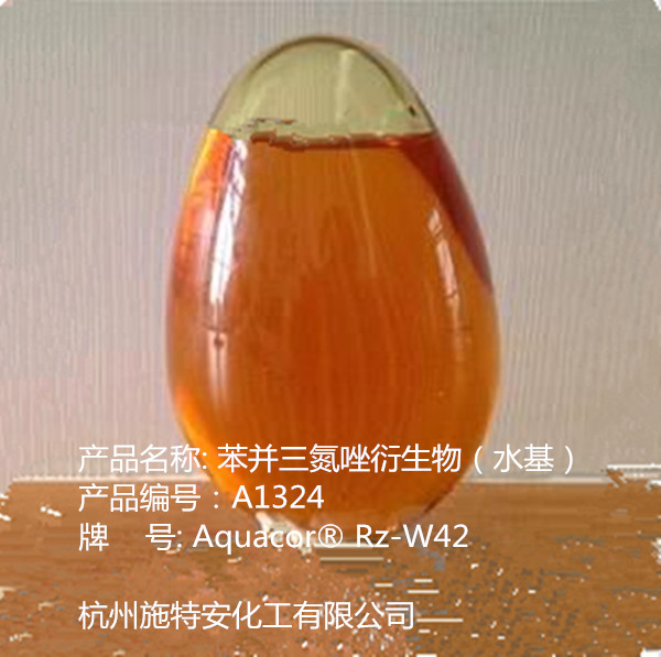 应用: Rz-W42可在所有的水基体系中,防冻液,液压液,金属加工液等用作铜的缓蚀剂,