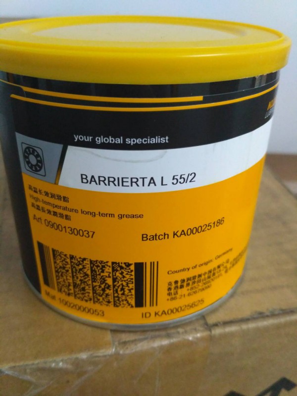 BARRIERTA L 55/2是能耐温高达280度的高温长寿全氟聚醚润滑油脂,是高温长寿润剂的**。不产生积炭,不会卡死轴承,再润滑周期长,润滑性能好.对链条及轴承有终生润滑的效果.能承受高温.能抗化学介质,能承受负载,润滑剂不含硅成分.