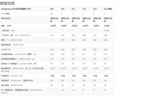 Mobilgrease XHP 005, 220 (美孚润滑脂XHP 005, 220) 是较软的高温润滑脂,推荐用于集中供脂系统、齿轮润滑,以及需要低温泵送性的应用。