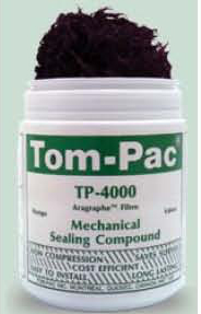 TP-4000密封剂 TP-4000不建议用于纸浆厂黑液、石灰浆、石油馏出物、硝酸、黄铜或青铜轴套。 请参考TP-4800和TP-5400。 优势 节约水:不需要冲洗或密封水 轴套:Tom-Pac® 是非压缩化合物, 因此可以大大减小轴套磨损 电力:由于对轴的压迫减少,可以节约8% 的电能 停机时间:不需要停机,可以再机械运转时注入 推荐应用 产品型号 *大转速rpm 温度范围 pH 范围 备注 TP-4000 3600 -40°C to 315°C 2-12 大多数应用 TP-5400 3000 -10°C to 260°C 1-13 USDA H1 ##纸张 TP-4800 2400 -40°C to 210°C 0-14 苛刻的化学品、溶剂、酸 Tom-Pac®##在线注入系统 Tom-Pac®密封剂可以在线注射,不需要停机维护 TP-8100?TP-8200