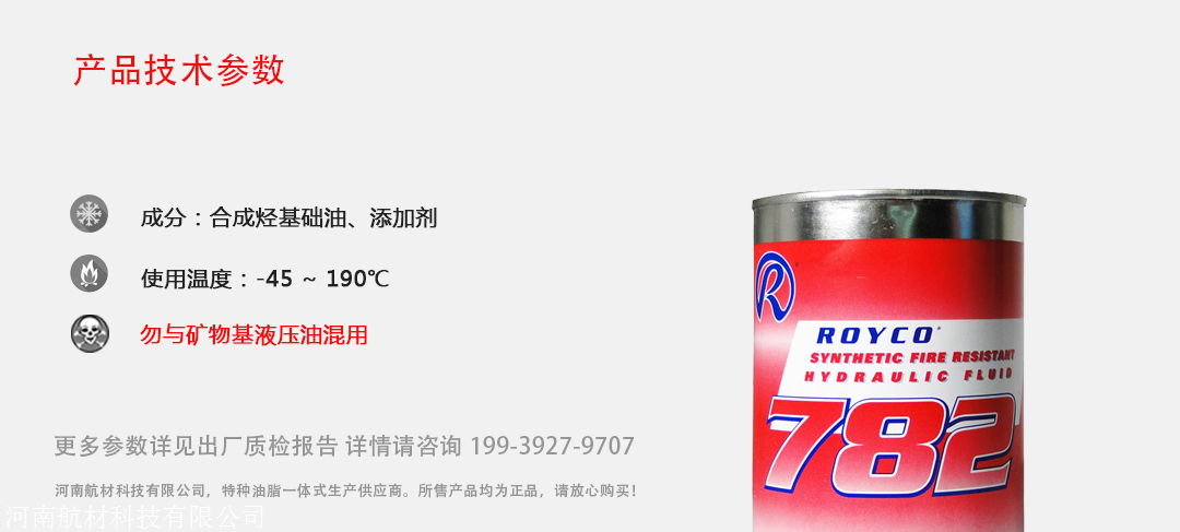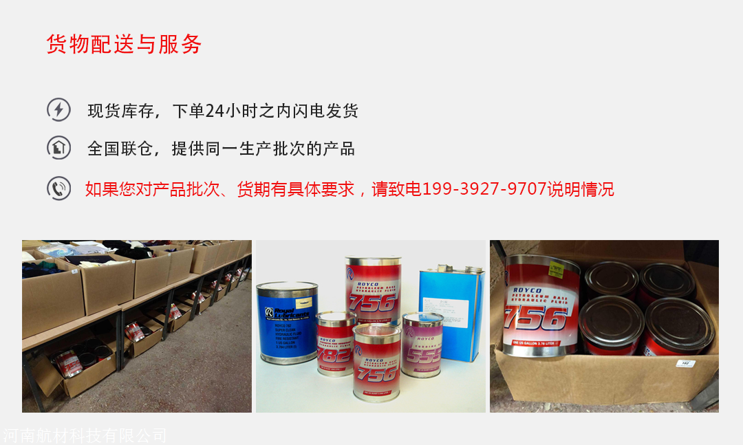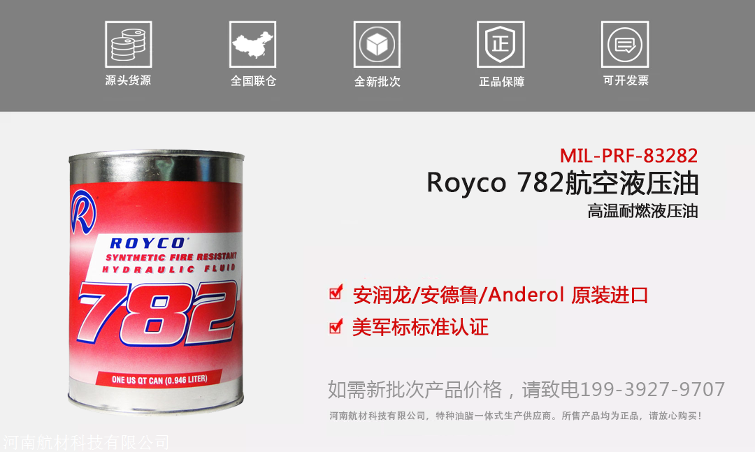 受到行业供需和进口关税的影响,Royco 782耐燃航空液压油的价格有一定波动,如果您需要实时价格,欢迎致电航材科技.