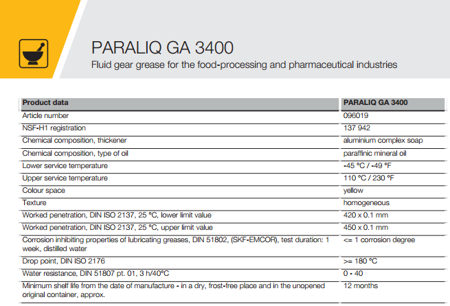 PARALIQ GA 3400的基础上与一个基本的铝复合皂的链烷烃矿物油。