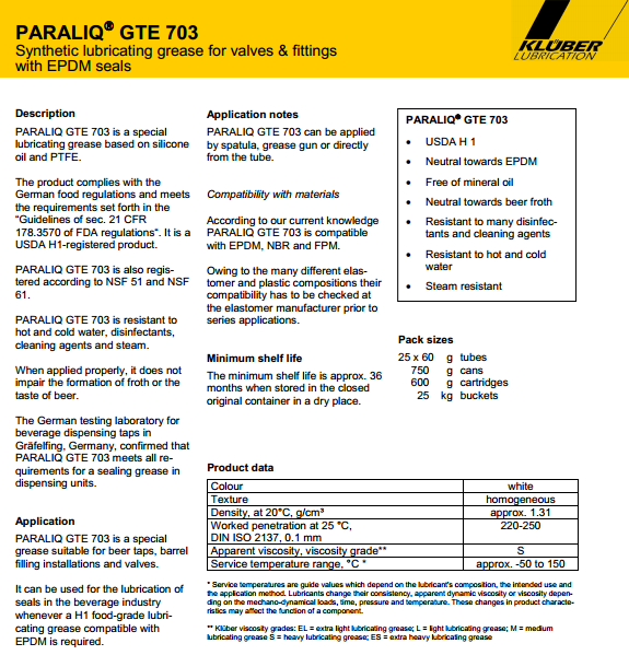 具有良好的相容性与EPDM密封和啤酒的泡沫,从而延长密封件的使用寿命,减少停机时间