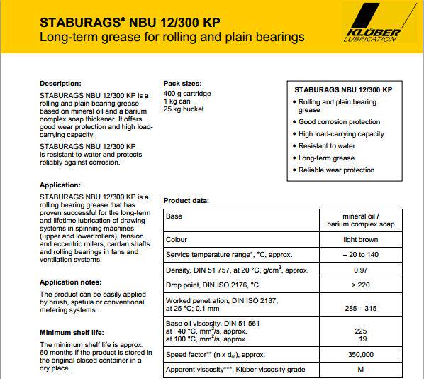 STABURAGS NBU 12/300 KP轴承长期润滑脂