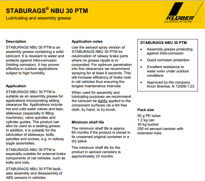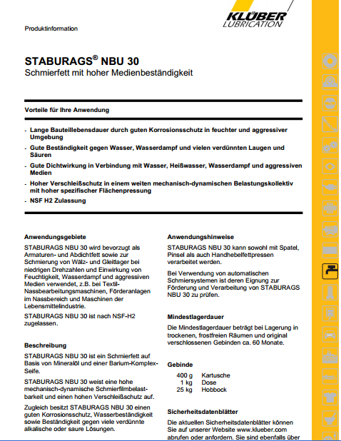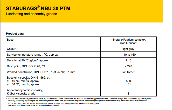 STABURAGS NBU 30 PTM高速高温润滑脂