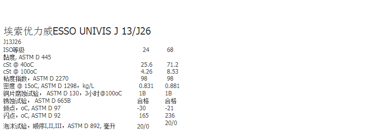 埃索优力威J13油品具有良好的剪切稳定,可长期用于高压高温作业环境中。可延长油品/过滤器的使用寿命,对设备提供##保护,从而降低保养维修成本及废油处理费用。