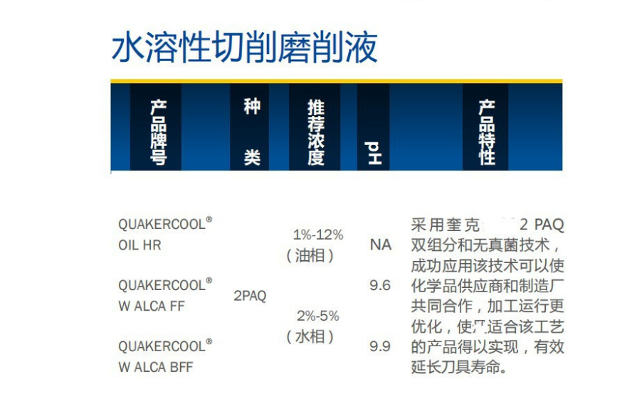 奎克好富顿 QUAKERCOOL® W ALCA FF高性能双组分切削液水相产品介绍