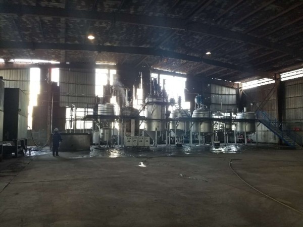 生产流程如下:先将各种废机油打入脱水、脱氢罐加热到150度左右脱水、脱氢;油温降到80度时将油打入脱胶罐中加入脱胶剂、沉降剂搅拌30分钟后脱胶;油品温度降到60度将油打入脱色罐中加脱色剂搅拌30分钟, 然后沉淀1小时(以客户所带油品为主),过滤机过滤即成基础油(处理一吨废机油做成啤酒色需要化工原料300元左右;做成接近水白色需要450元的化工原料;做成水白色需要800元左右的化工原料),出油率高达85%以上,指标达到再生基础油标准。然后调和成柴油。整个生产过程不冒烟、无异味、无噪音、无废水、安全环保。