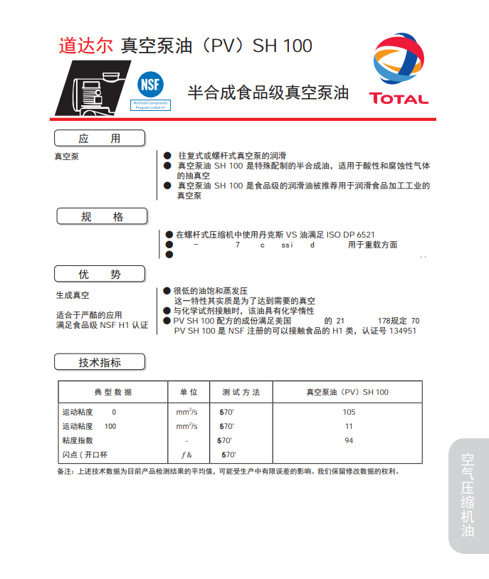 类别:半合成食品级真空泵油