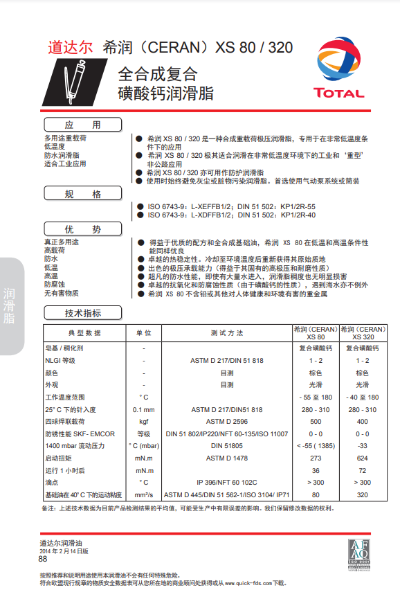 简介:希润XS 80 / 320 是一种合成重载荷极压润滑脂,专用于在非常低温度条件下的应用