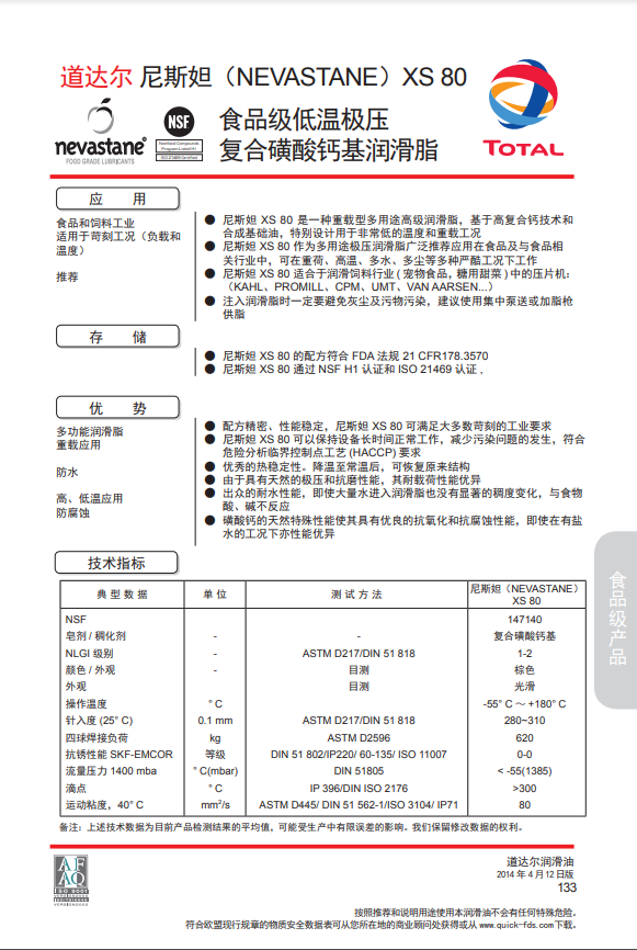 道达尔尼斯妲NEVASTANE XS 80 食品级润滑脂