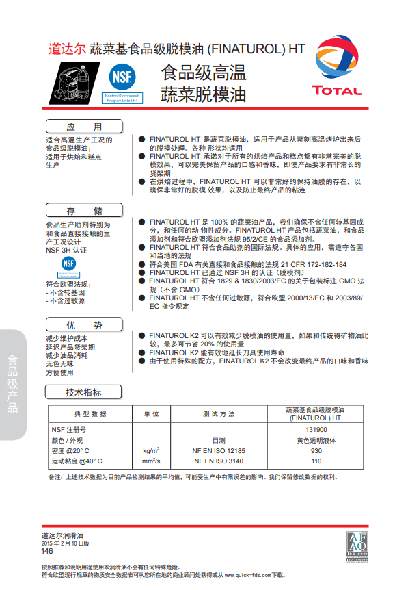 简介:FINATUROL HT 是蔬菜脱模油,适用于产品从苛刻高温烤炉出来后的脱模处理。各种形状均适用。