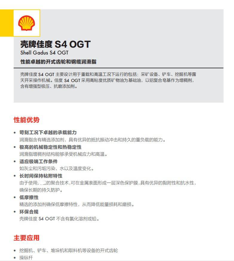 壳牌佳度Shell Gadus S4 OGT开式齿轮润滑脂系列