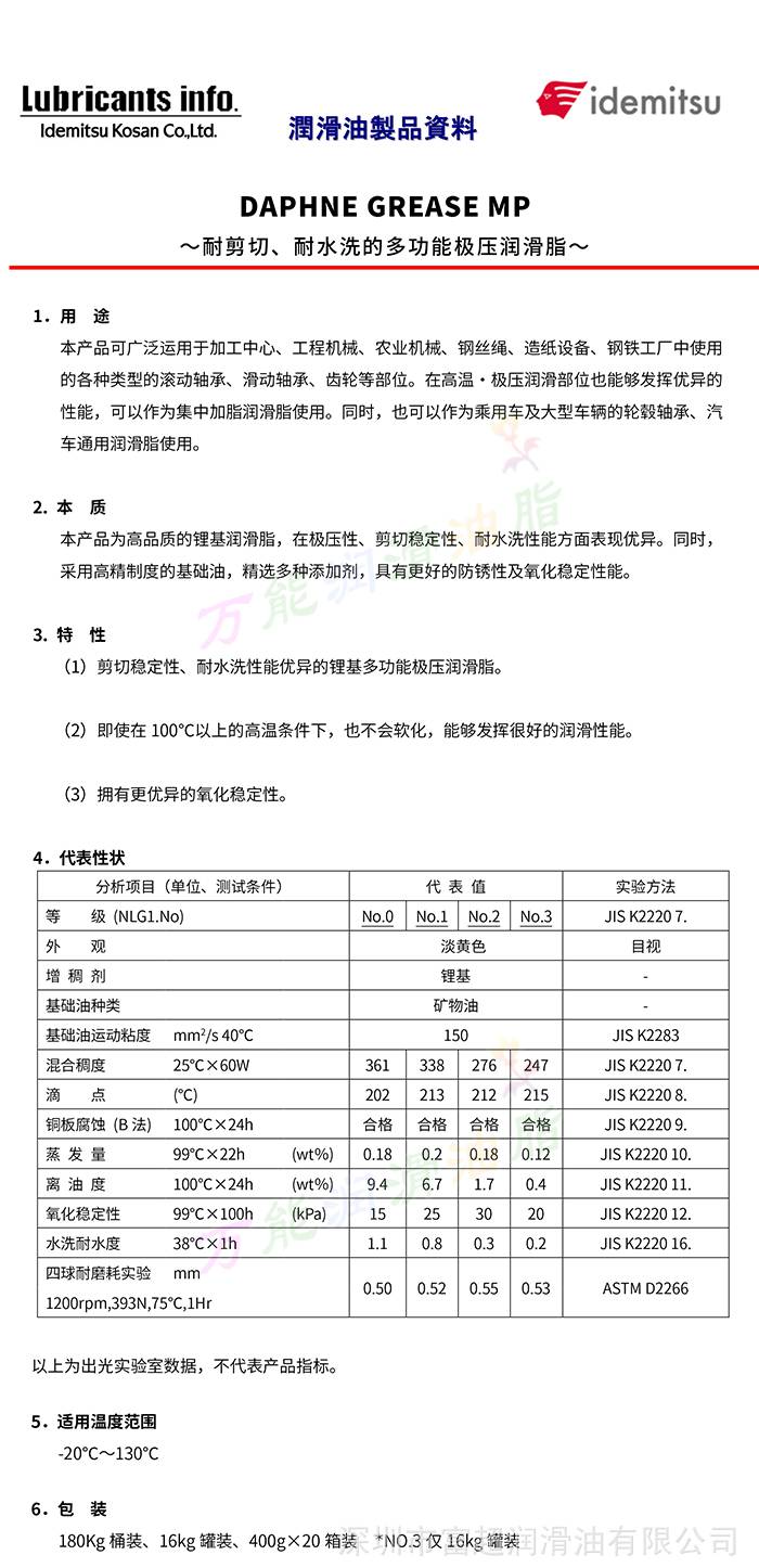 本产品适用于各种工业机械之轴受的润滑,本润滑脂属于油种统X型产品,能达到各种接写轴受之耐重负荷、耐水性能的要求。