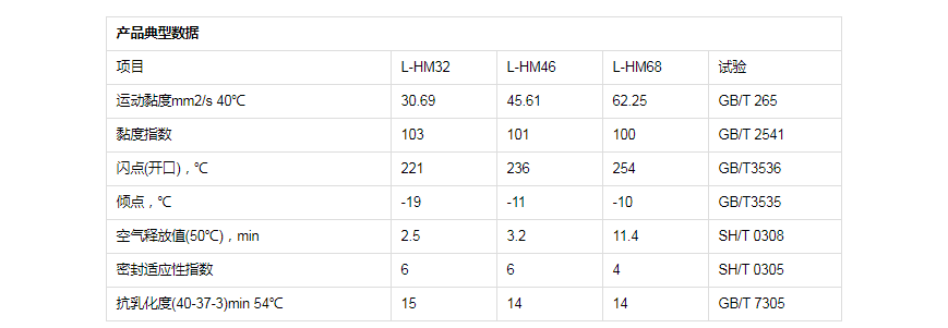 粘温性能,保证液压元件在工作压力和温度发生变化的条件下得到良好润滑、冷却和密封;抗磨性能,减缓设备的磨损,有效延长泵及系统的运转寿命;氧化安定性,减缓油品的衰变速度,延长换油期;抗泡性和空气释放性,保证系统灵敏、准确、平稳的传递静压能;抗乳化性和过滤性,可使混入油中的水份迅速分离,限度地减少过滤器堵塞,保证油品的正常润滑;无灰型比锌型HM液压油具有水解安定性能;与各种常规密封材料均有良好的适应性。