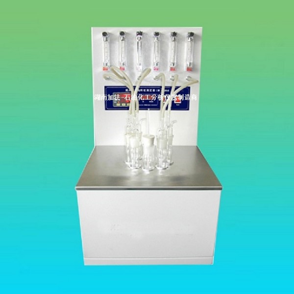 1、 润滑油老化特性测定器为台式,包括不锈钢浴锅和的流量计。不锈钢盖子上有孔,可放入蒸发瓶;