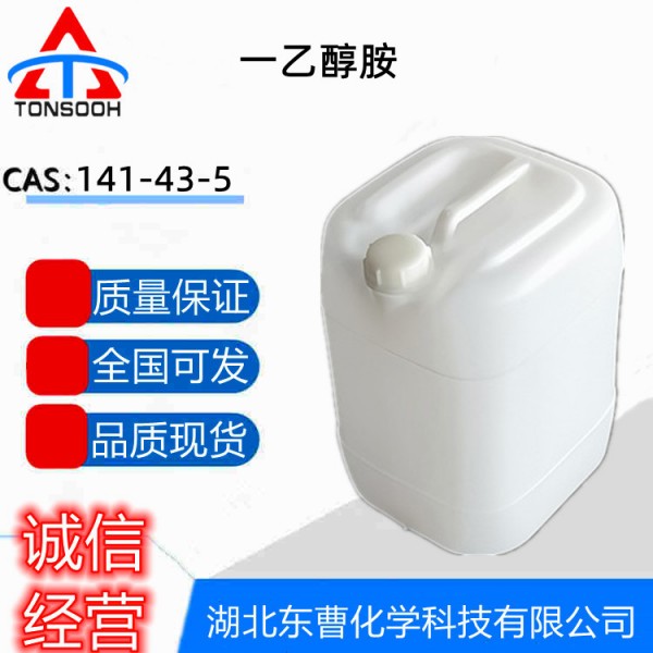 理化性质乙醇胺亦称“氨基乙醇”。化学式HOCH2CH2NH2。分子量61.08。无色粘稠液体。易吸湿,有氨的气味。比重1.0117(25/4℃)。熔点10.3℃。沸点170.8℃。折光率1.4539。与水、甲醇、丙酮互溶,略溶于苯、##,微溶于正戊烷。呈强碱性,离解常数K=3.39×10-10(25℃);25%水溶液pH为12.1,能吸收空气中二氧化碳。其盐酸盐为易吸湿晶体,熔点75~77℃。工业上由环氧乙烷与氨水反应制得。乙醇胺为重要的化工原料,用以制药品、香料、表面活性剂、涂料、乳化剂等,也是皮革软化剂、农药分散剂;还可用于气体的净化,除去气体中二氧化碳与硫化氢。