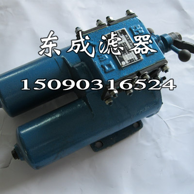 双筒网片式滤油器主要由壳体、滤芯组件、转换阀体等零部件组成,转换阀体是由铸造铝合金制成的锥体,阀体上铸有上下两个油孔,当转换阀体从一限位置转至另一限位置时,阀体将一滤芯腔的通路关闭,而将另一滤芯腔的通路打开,此时压力油从滤器进口流入滤芯腔,经滤网过滤后的清洁油经上方油腔从出口流出,滤清油液的目的