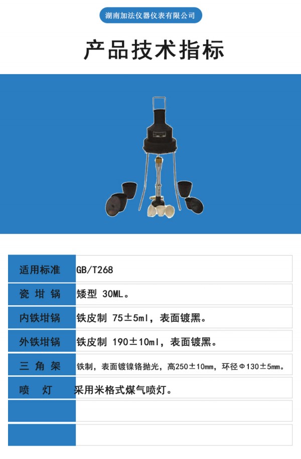 内铁坩锅:铁皮制 75±5ml,表面镀黑