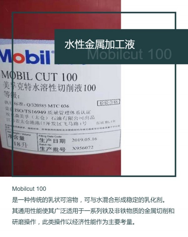 1.Mobilcut 100 是一种传统的乳状可溶物,可与水混合形成稳定的乳化剂。 其通用性能使其广泛适用于一系列铁及非铁物质的金属切削和研磨操作,此类操作以经济性能作为主要考量。