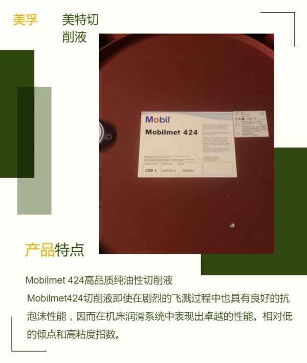 美孚美特424用于有色金属加工的纯油性中等负荷对铜无侵蚀切削油