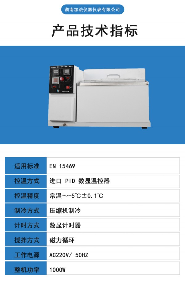 仪器温度控制部分采用高、反应快、读数清晰的数字电子温控仪表。制冷机为进口压缩机,深冷可达-5℃,它解决了以前由于采用人工干冰降温,用杜瓦瓶保温造成的温度不易控制,,试验操作技术困难。WH-15469型液化石油气游离水测定仪具有降温迅速、大方美观、操作简便等优点,是石油化工、燃气等行业理想的分析仪器。