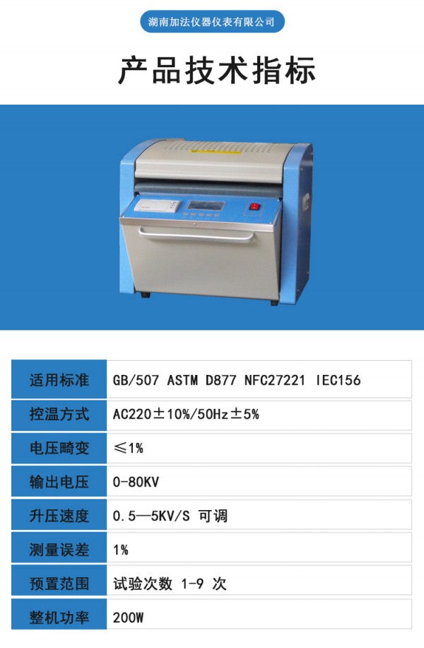 适用标准:GB/507 ASTM D877 NFC27221 IEC156