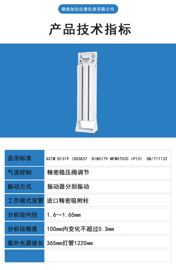 适用标准:ASTM D1319 ISO3837 DIN5179 NFM07020 IP131 GB/T11132