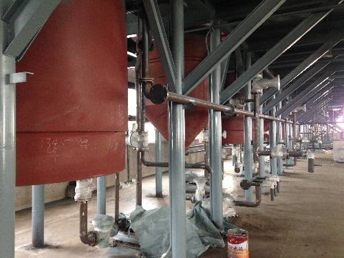 工艺管线图2 山东 “中燕油罐设备有限公司”(原山东金马油罐制造厂)成立于1987年,公司“油罐制造”拥有30余年的历史,“润滑油生产线配套制造与安装”拥有20余年的工程经验。目前,我公司是国内一家专业从事“润滑油生产线”设计与制造的企业