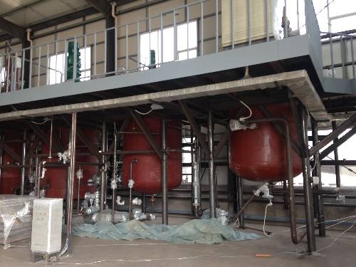 工艺管线图1 山东 “中燕油罐设备有限公司”(原山东金马油罐制造厂)成立于1987年,公司“油罐制造”拥有30余年的历史,“润滑油生产线配套制造与安装”拥有20余年的工程经验。目前,我公司是国内一家专业从事“润滑油生产线”设计与制造的企业